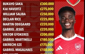 阿森纳与萨卡敲定30万英镑周薪的新合约,...