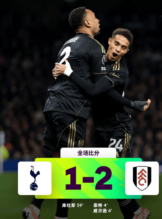 热刺1比2富勒姆,6分钟崩盘跌至第10,四场不胜主帅被喊下课